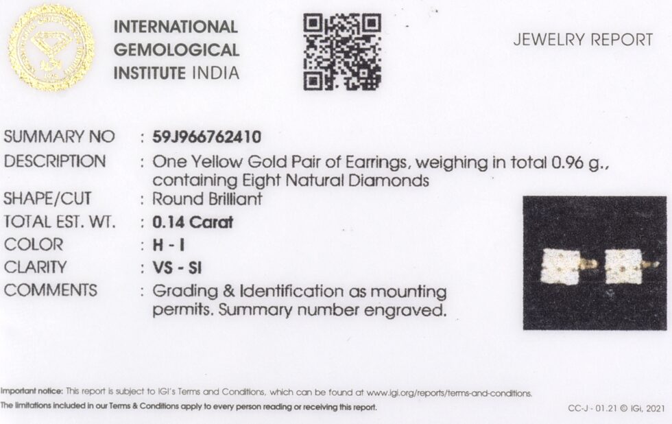 One Yellow Gold Pair of Earrings, weighing in total 0.96 g.,