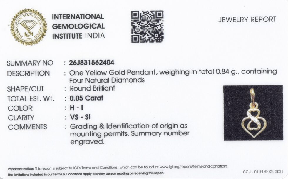 One Yellow Gold Pendant, weighing in total 0.84 g., containing