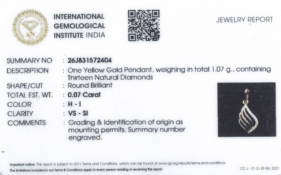 One Yellow Gold Pendant, weighing in total 1.07 g., containing